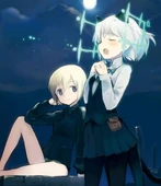 Erica Hartmann (エーリカ・ハルトマン, Ērika Harutoman) is a witch of the 501st Joint Fighter Wing, originating from Karlsland, and affiliated with the Karlsland Air Force and her home unit: the JG 52. She is the twin older sister of Ursula Hartmann, a scientist, an engineer, and a witch. She is also Gertrud Barkhorn's closest friend. Some call her by the nickname of Frau (フラウ, Furau), especially her friends. However, she became renowned as the Black Devil (ブラックデビル, Burakku Debiru). Her radio callsign is 'Karaya-1' (カラヤ・アイン, Karaya Ain). Hartmann is the Karlsland's (and therefore humanity's) number one ace.